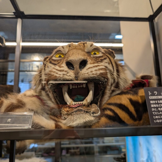 絶滅のおそれがある動植物の国際取引を規制する条約で、ここでは実際に税関で押収された毛皮や標本などが並びます。