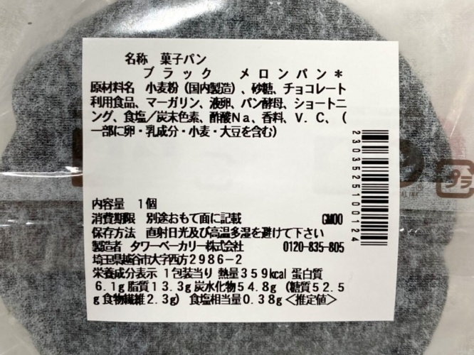 まずは「ブラックメロンパン」(税込159円)。1個当たりの熱量は359kcalです。