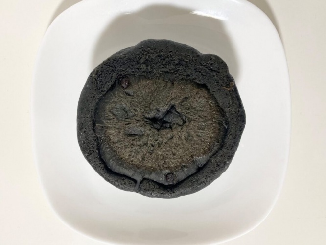 袋から取り出すと、まるで溶岩のように黒々とした姿が。裏返してみても、しっかり真っ黒。