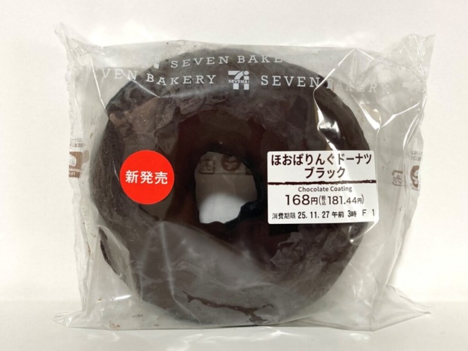 お次は「ほおばりんぐドーナツ ブラック」(税込181円)。1個当たりの熱量は383kcalです。