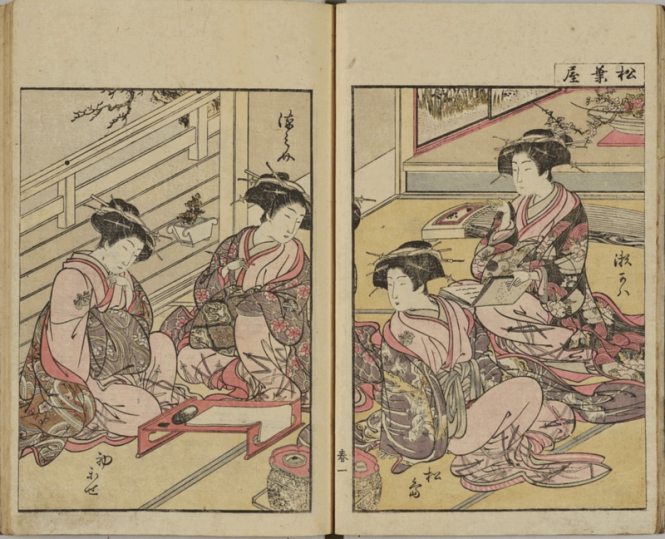 青楼美人合姿鏡 北尾重政・勝川春章筆(文化遺産オンライン)https://bunka.nii.ac.jp/heritages/detail/556070