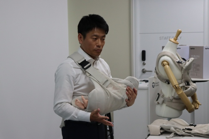 2つ目は「スリングスタイル」。スリングベルトで長時間の抱っこの負担を軽減しつつ、赤ちゃんとの目線の高さを保つことで安心感を生み出す。胸やお腹を圧迫しない構造で、熱がこもりにくく快適に抱っこできるのが特徴とのこと。