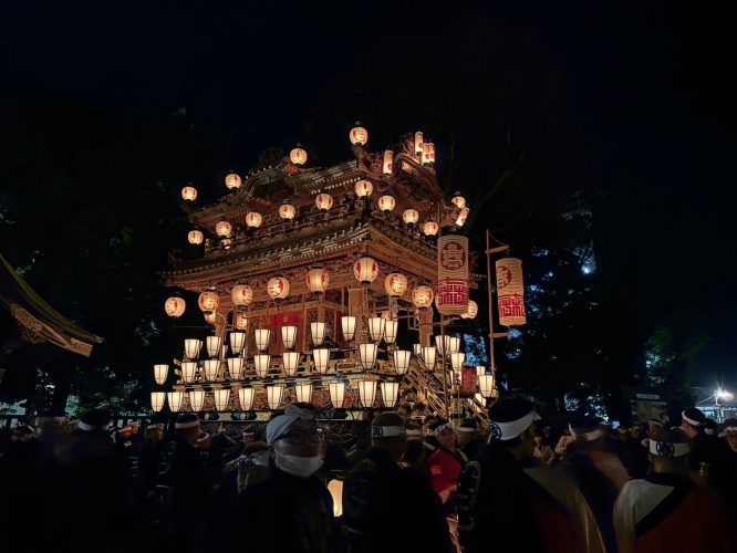暗闇に提灯のあかりが無数に浮かび上がり、幻想的で美しい。夜の部は、昼の部で秩父神社に集っていた屋台が、今度は町内をめぐって「お旅所」という場所に戻っていきます。