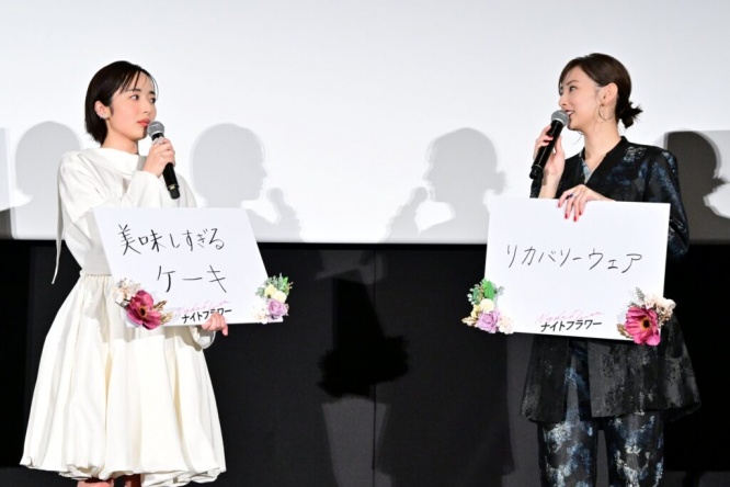 映画『ナイトフラワー』が現在大ヒット公開中!12月9日には丸の内ピカデリーにて公開御礼舞台挨拶が実施され、主演の北川景子と共演の森田望智が登壇した。