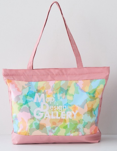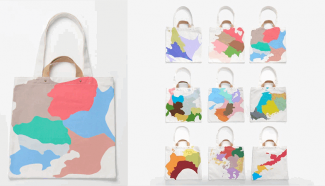 「2026年福袋」では、先着順で福袋限定特典のオリジナルバッグが付いてきます。全国47都道府県のシルエットをランダムに並べた鮮やかな迷彩風のデザインが施されており、ベースの色はネイビーとピンク(店舗限定カラー)の2色展開です。
