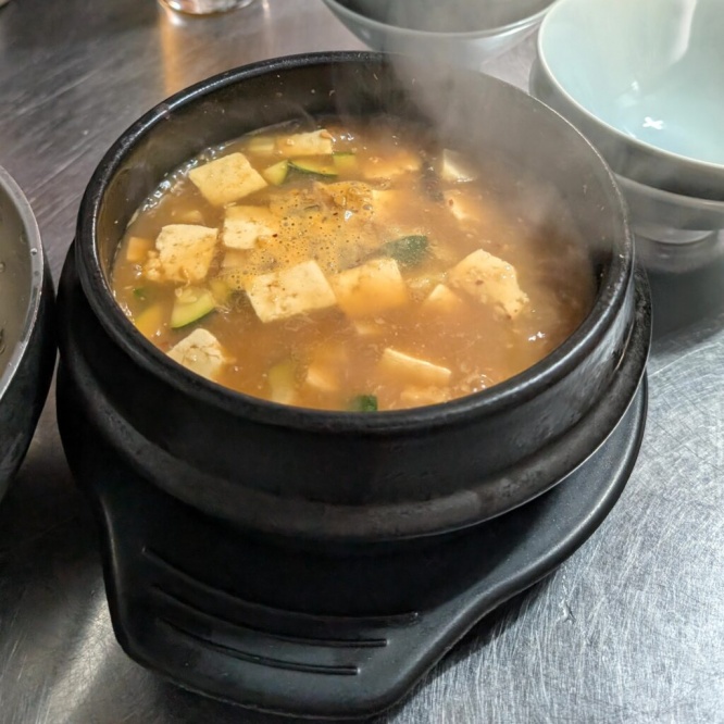 2品目は「テンジャンチゲ」(税込902円)。韓国伝統の味噌であるテンジャンを使った鍋料理で、豆味噌のような深い香りとコクが特徴で、濃厚な風味。
