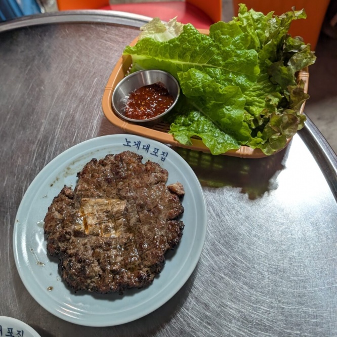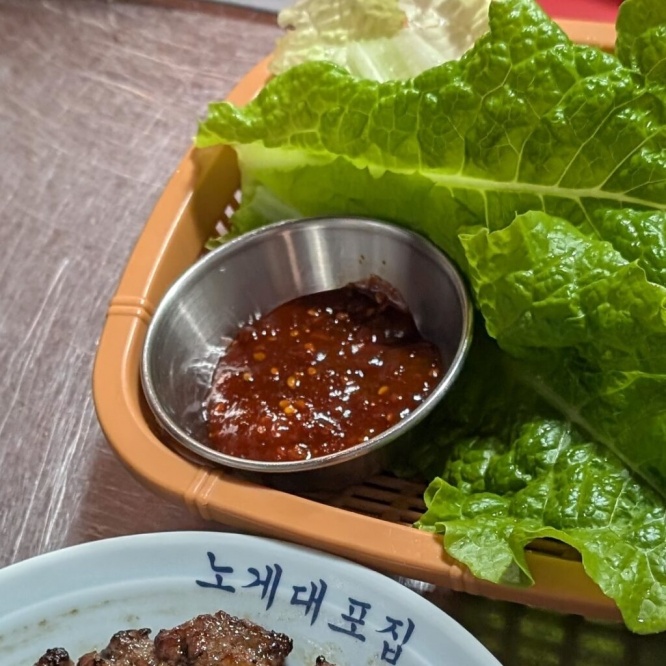 付け合わせの自家製サムジャンは、唐辛子と韓国味噌を合わせた奥深い辛味があり、お肉の旨味の良い引き立て役。他の料理にも付けて食べたくなるほど好みの味で、人気メニューとされる理由がよく分かりました。