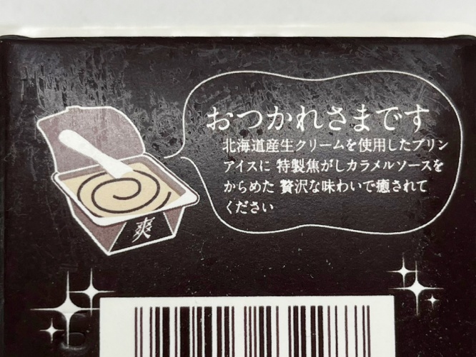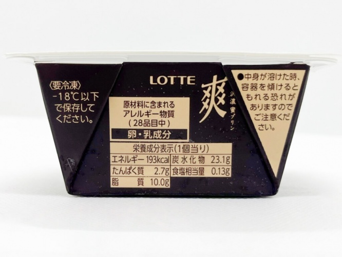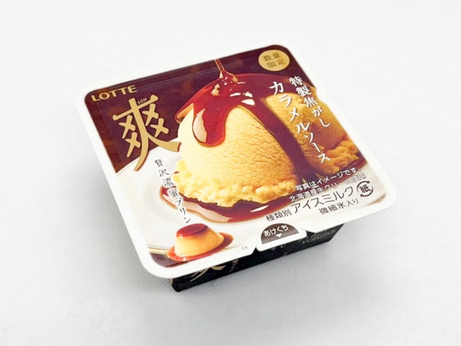 濃厚なカラメルソースを連想させるパッケージで、美味しそうなプリンが描かれています。分類は“アイスミルク”。“ラクトアイス”に分類されている通常の「爽」よりも、乳固形分を増やすことで、よりリッチな味わいになっているそうです。
