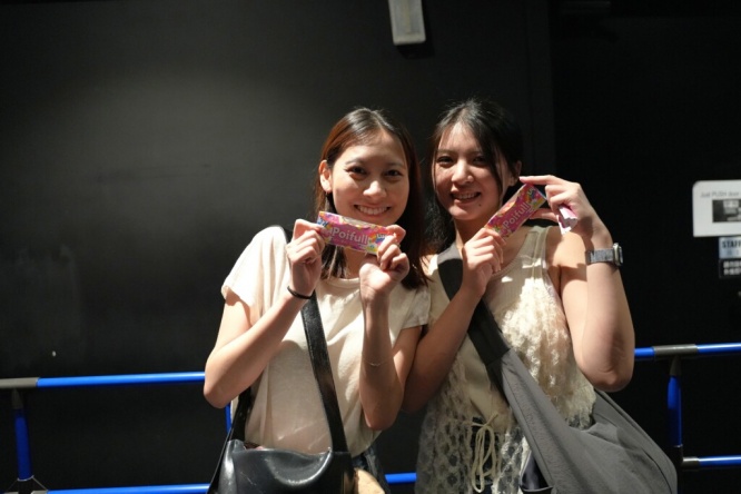 【台北】「ポイフル」でハッピーをシェア10月8日の台北公演では、グミ「ポイフル」を配布。真中まなは「台北のコンビニにも明治の商品がいっぱいあって新鮮だった。ポイフルは見た目も味もハッピーなお菓子なので、ぜひ友達と楽しんでほしい」と、現地の流通状況に驚きつつ魅力を語った。