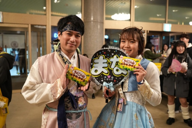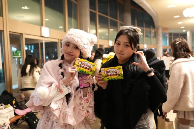 会場にはメンバー直筆のサインパネルも設置され、配布されたお菓子を手に記念撮影を楽しむ現地ファンの姿が目立った。