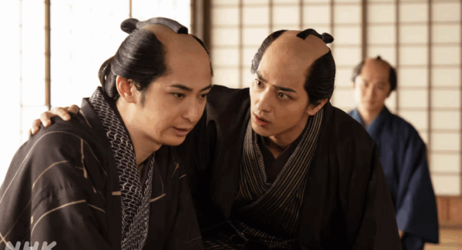 そんな一面を、真面目で堅物の恋川春町(岡山天音)に見抜かれ、おまえは俺と同じと言われ「来い!」と両手を広げられ「嫌だ!!」と全力で拒否するシーンは笑えましたね。