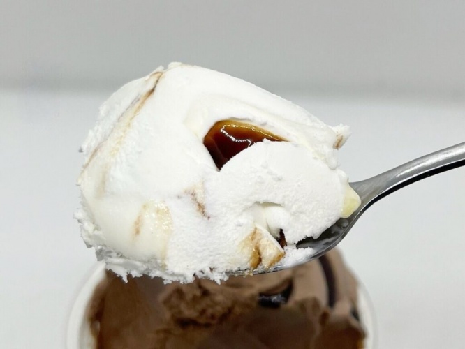 ミルクアイスはさっぱりとしていながら、しっかりと牛乳のコクもあり、そこに時折感じるチョコソースの味わいがたまりません~!