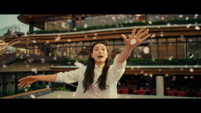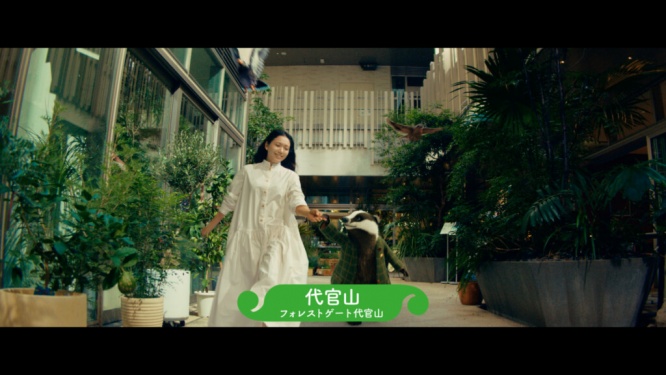 白いワンピース姿で登場した二階堂は、渋谷サクラステージやフォレストゲート代官山など、緑豊かな拠点を舞台に“ふどうさん”と手をつないでスキップをするなど、息の合った演技を披露。撮影はグリーンバックで行われ、二階堂は「イマジナリー“ふどうさん”」を相手に、ファンタジックな世界観を作り上げた。映像には、実際に渋谷周辺で観測されているオナガやカワセミなど、様々な鳥たちも登場し、都会と自然の共生が表現されている。