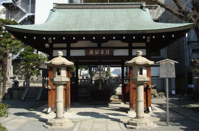 本能寺にある信長公廟と家臣たちの供養塔(Wikipedia)
