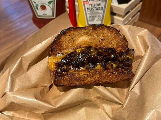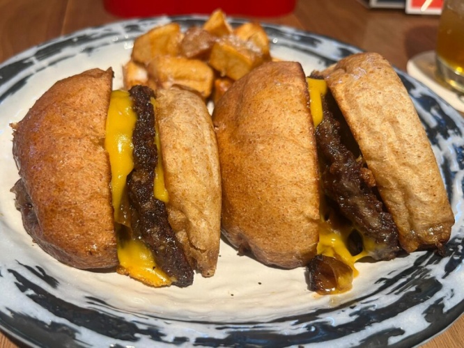 パティの肉は粗挽きで、国産牛100%使用のつなぎなし。国産の天然塩のみで味付けされているそうで、“お肉を食べている”という満足感がとにかく高い!パンの小麦の風味、チーズのコクもよく合っていました。何よりもソースが最高。よく煮込まれた玉ねぎの奥深い甘さが、肉の旨みに負けることなく、味わいに深みを与えていました。