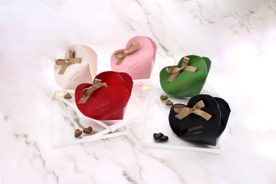 5種のカラフルなハートパッケージにこだわりのチョコレート