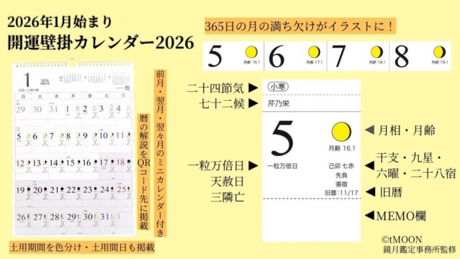 日常生活に寄り添った便利アイテムを提案している「ビジュアル東京」が、12月18日(木)より販売しているのが、『開運カレンダー2026』。