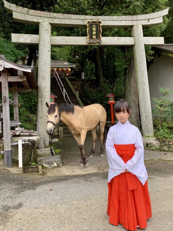 吉川八幡神社の御神馬「いづめ」は、木曽馬系の日本在来馬で日本古来の貴重な合戦馬です。令和元年の改元と新天皇御即位に際し、2019年6月に御神馬として吉川八幡神社に来ました。