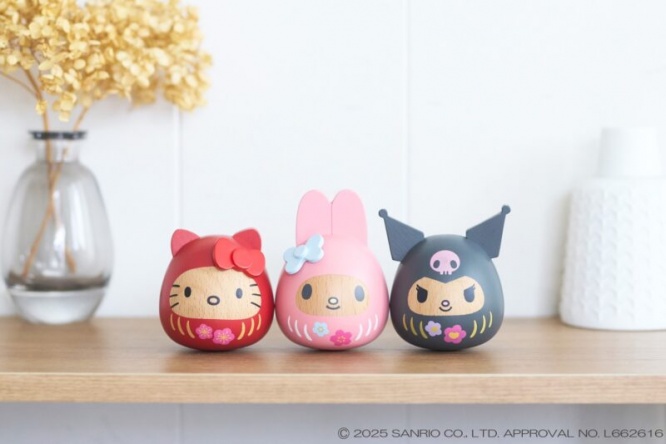 2025年9月26日(金)に発売された「クロミ 木製だるま」「マイメロディ 木製だるま」、そして2025年12月17日(水)に再入荷し、1日で完売した「ハローキティ 木製だるま」たちが、ついに再発売されます!