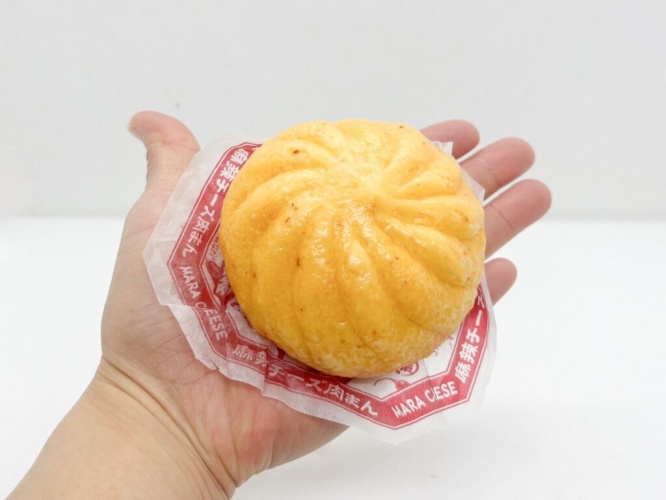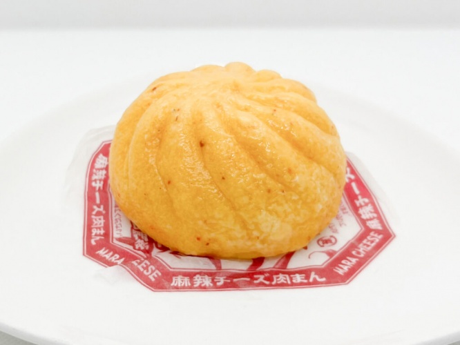 こちらが購入してきた『麻辣チーズ肉まん』(税込198円)。皮にも唐辛子が練りこまれていますね。