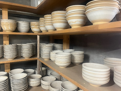 外には五つの登り窯が並び、少し歩けば川の流れを使って土を砕く唐臼の音が聞こえる。器が生まれる環境そのものが、とても静かで豊かな場所です。