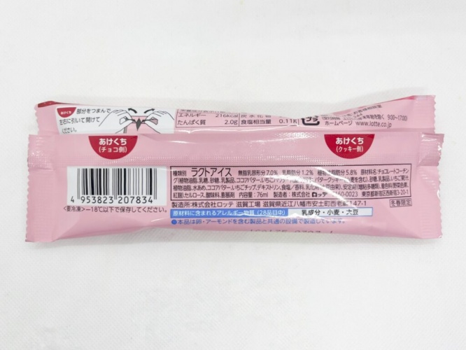 裏面には、開け口が二つ。チョコレート側からもクッキー側からも開けられるように工夫されています。