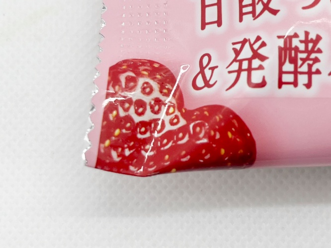 袋から出した途端、イチゴの甘酸っぱい香りに包まれます。チョコレートには、イチゴのチップがたっぷり。