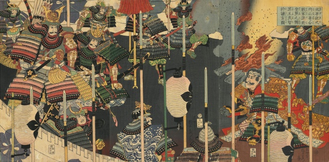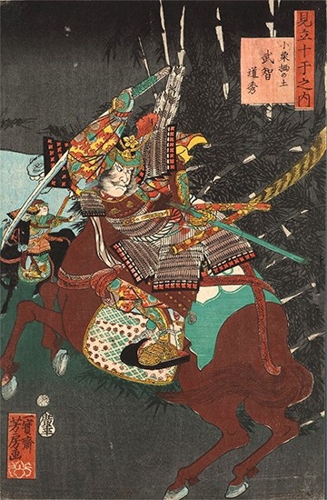 落ち武者狩りで重傷を負う明智光秀。見立十干之内 小栗栖の土 武智道秀/歌川芳房作