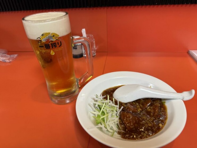 さらに、レバーの唐揚げには、特製の中華ダレがかかっており、これまた、ビールが進む逸品となっている。