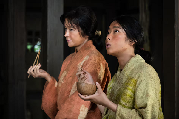 藤吉郎のホラ話に興味津々な妹あさひに対して、端から信じていないとも。NHK大河ドラマ「豊臣兄弟!」公式サイトより。🄫NHK