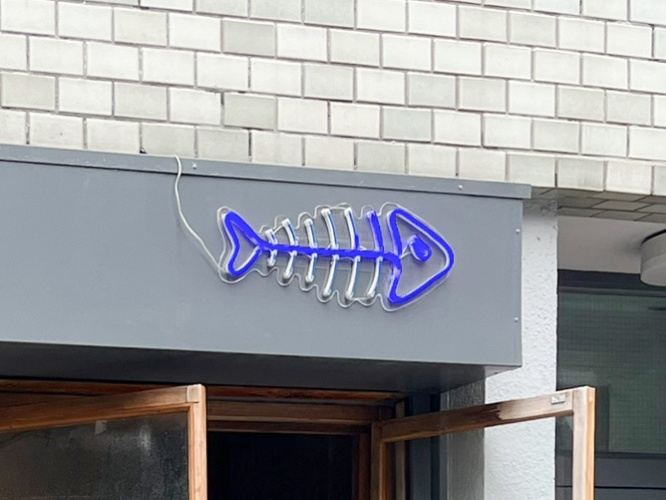 お店があるのは、東銀座駅A8出口から歩いて2分ほどの所。可愛らしいお魚のネオンが目印です。
