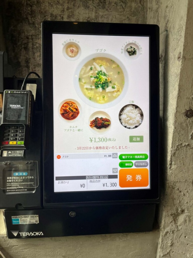 注文は入り口すぐ横にある券売機から。メニューはなんと“プゴク”のみ!