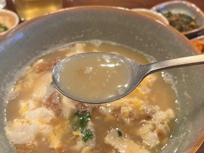 コーン茶も付いてくるのですが、こちらは食後にぴったり。魚やキムチの風味を程よくさっぱりさせてくれます。完食後は、お腹も心もぽかぽか。優しい味わいに癒されました!