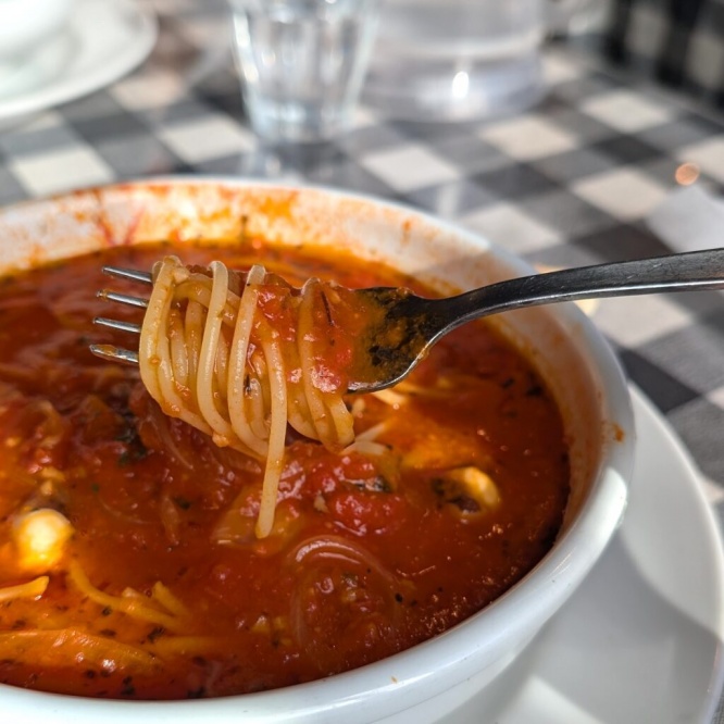YouTubeやSNSでたびたび目にする、ガーリックの香りが立つスープに、たっぷりのパスタが浸る「真夜中のスパゲティ」。“日本のスープパスタの原点”とも言われる存在で、以前から名前だけは知っていたものの、なかなか食べる機会がなく、以前から気になっていました。