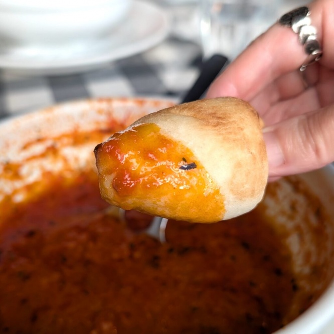 パスタを食べ終えた後に残ったスープは、パンに浸して味わうのがおすすめ。スープをたっぷり吸ったパンは、パスタとはまた違ったおいしさで、最後の一滴まで楽しめます。スープまで飲み干す頃にはかなりの満腹感が!桜木町駅近くでこの価格帯とボリュームであると考えると、非常にコスパの高いランチでした。