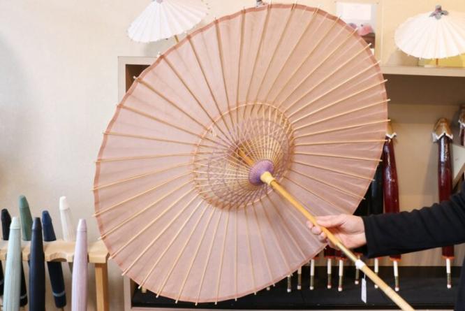 骨、つなぎ、張り、仕上げ、糸かがり……、今もなお岐阜和傘は多岐にわたる工程を分業で行っており、1本の和傘ができるまで6~8人の職人さんが関わっているといいます。安価ではありませんが、日本の伝統民具である和傘は、長く大切に使える逸品です。ぜひ店頭で実物を手に取り、その魅力を体感してみてください。