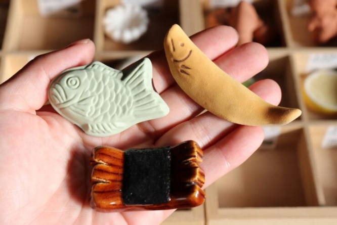 土・形・釉薬・焼成・下絵・上絵、無限の組み合わせの中からインスピレーションを得て制作するという創作箸置き。デザインは、和菓子、植物、食品、動物、パン、道具など、500種類にも及ぶというから驚きです。