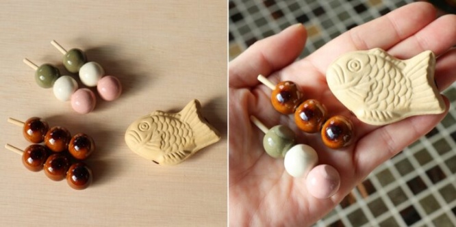 特に人気がある箸置きは、みたらし団子、三色団子、たい焼きとのこと。団子のもっちり感やたい焼きの皮のサックリ感まで伝わってきます。