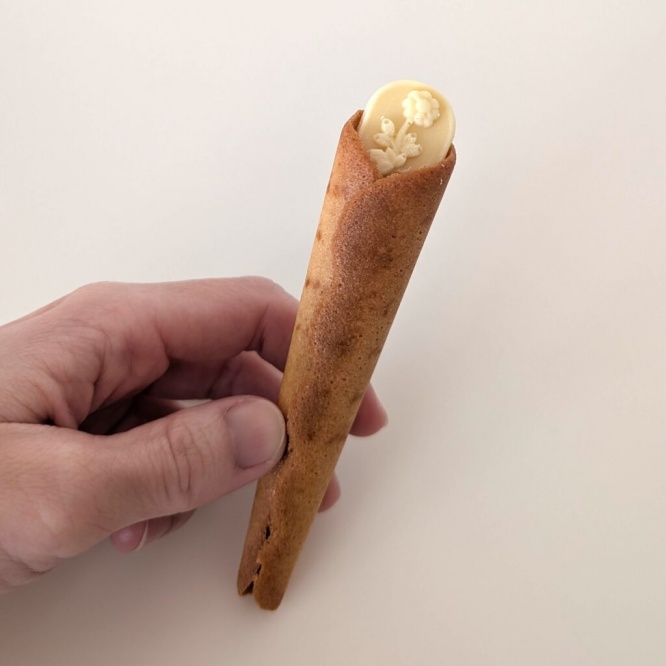 基本構成は通常の「タルティンブーケ」と同じですが、ラングドシャの上にのせられているホワイトチョコレートの代わりに、ミルクチョコレートを使用。