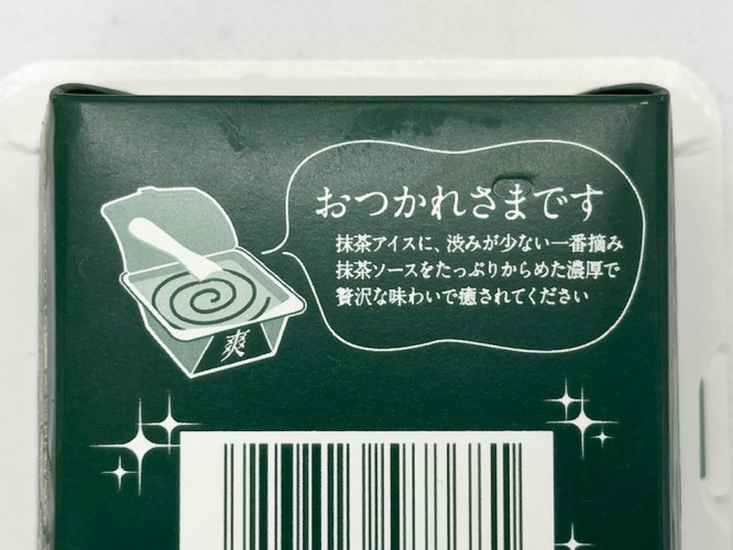パッケージは渋い色合いで、見るからに重厚な抹茶味を予感させます。通常の『爽』は“ラクトアイス”に分類されますが、贅沢シリーズは“アイスミルク”へグレードアップ。より濃厚で優雅な味わいに仕上げているそう。