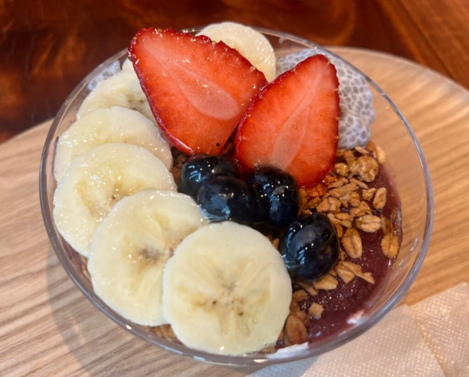 それでは一口。ん~アサイーがとっても濃厚で美味しい!程よい酸味と甘さが口いっぱいに広がります。他の食材との相性もバツグンで、さっぱりしていながらもそれぞれの風味を堪能できる味わいです。