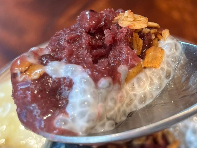 ベースのヨーグルトもとても濃密で深いコクがあり、これだけでも十分美味しいのですが、アサイーと合わさることで、味わいが何十倍もアップ。