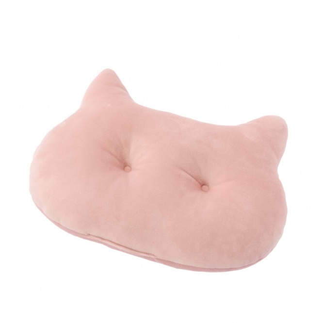 「にゃんこクッション ピンク」は、思わず猫ちゃんがゴロンとしたくなる質感を追及。人間の枕としても可愛いですよ。