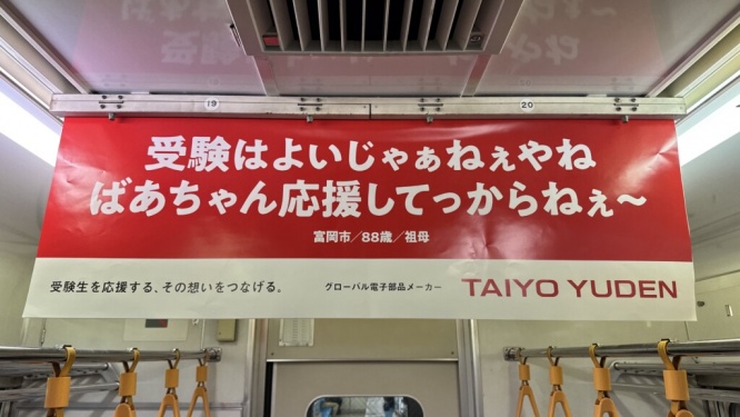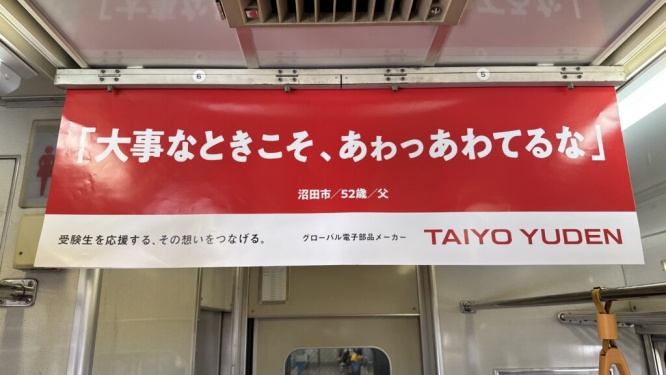 SNSでは、この広告を見かけた利用者による投稿がアップされ「太陽誘電の受験生応援広告、よかった」「エール励ましの中吊り沢山」「素敵な中吊り広告、受験生頑張れ」という声が上がっている。