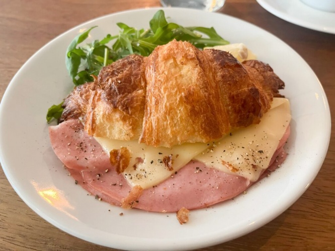 ハムは薄切りのものが層になっていて、食べ応えがあります。チーズがさらにクロワッサンの風味、ハムの旨みを引き出して美味しい!ナイフとフォークでいただきましたが、思い切りかじりついて、頬張りたくなりました。