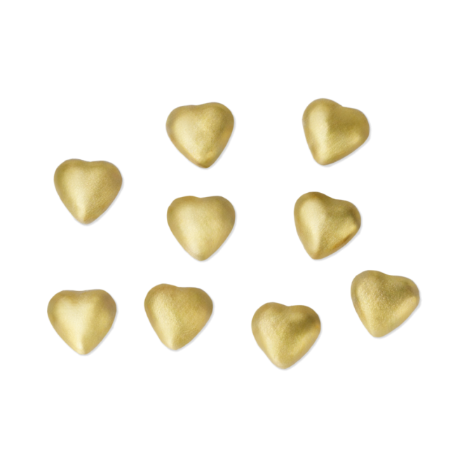 ハートチョコには華やかなゴールドがキュートなバージョンも。こちらはとろっとしたストロベリーフィリングが入っています。