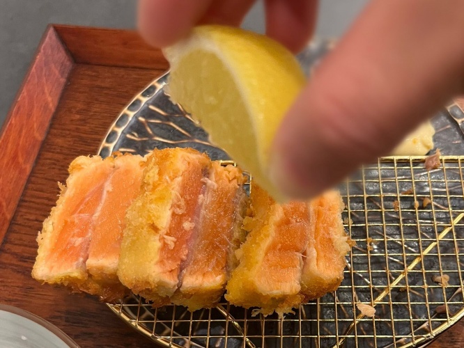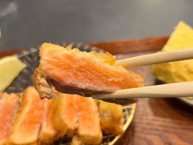 注文したのは『サーモンレアカツ定食』(税込2,150円)と『出汁巻き卵』(税込250円)。