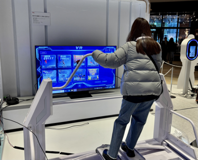 会場で特に注目を集めていたのが、VR技術を使ったスキーシミュレーター体験です。実際に体験してみると、TCLの大画面に映し出される競技コースの映像が滑らかで、思わず酔ってしまうほどのリアルさ。雪景色が美しく、なんだか寒さまで伝わってくるような臨場感でした。