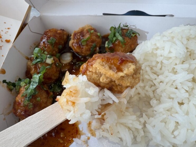 イメージ的には酢豚のようなメニューで、パクチーがトッピングされているのも非常に美味しいポイントでした。