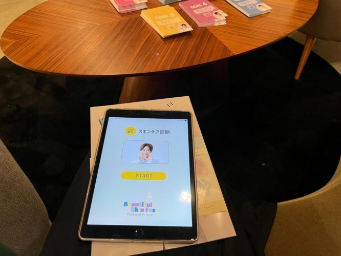 用意されているタブレットを使って、気になる肌の悩みなどの質問に答えていきます。